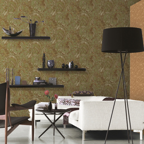 Giấy Dán Tường Mặt Sau Bằng Nhựa PVC Thiết Kế Hình Lá Acanthus